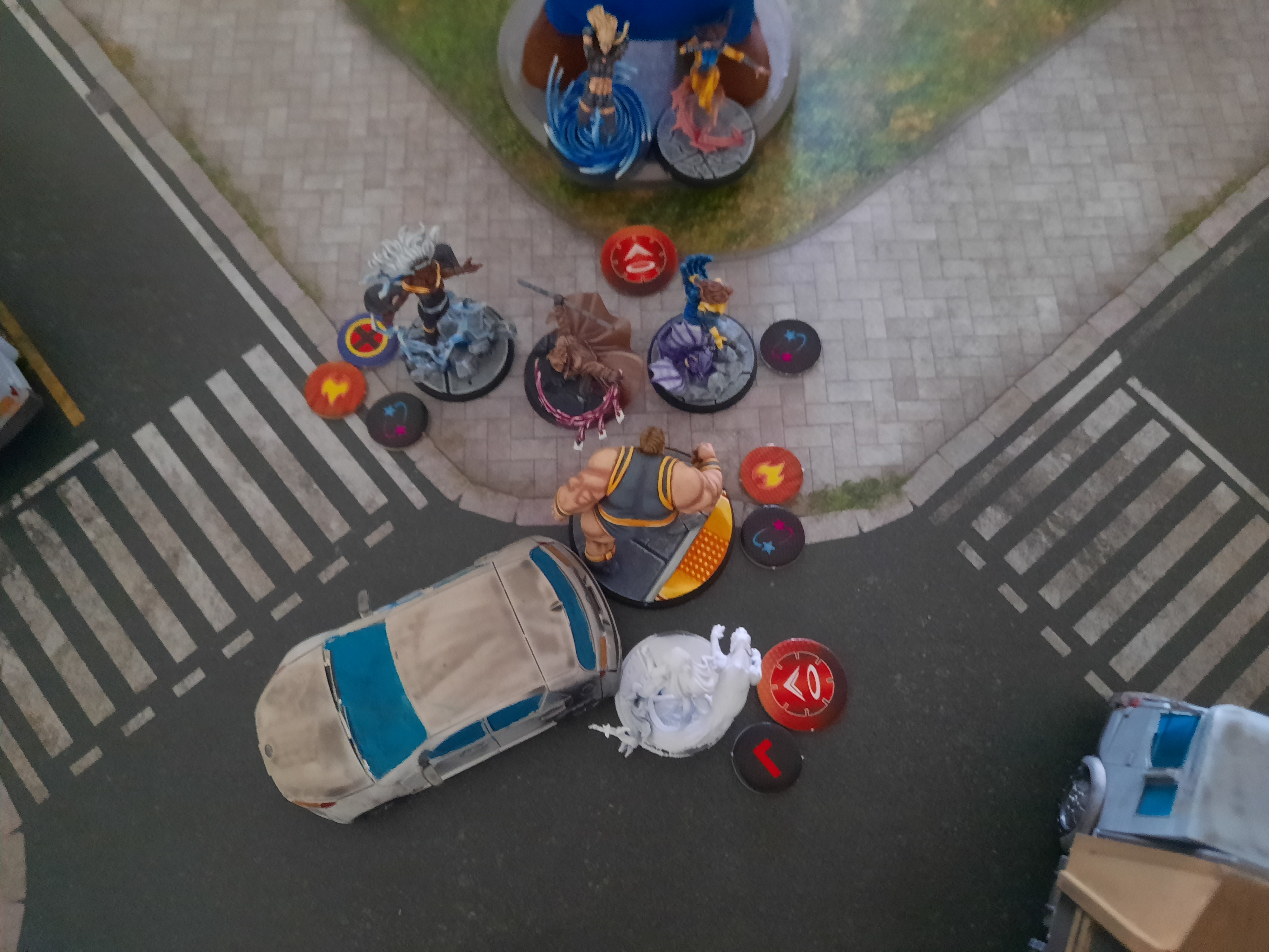 Mientras Magik se oculta detrás del muñequito del Donut para controlar un objetivo y evitar que le quiten el que porta, asegurando al menos 2 PV para los X-men.